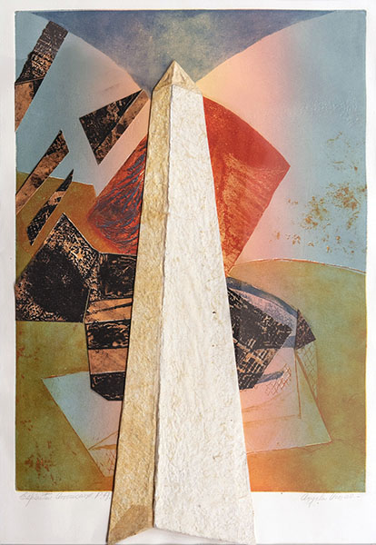 Obra realizada en homenaje al Bicentenario de la Revolución de Mayo, que muestra el típico obelisco porteño inserto en el centro de la escena y aplicado en collage sobre un entramado de planos de color que se dilatan hacia el lejano horizonte. Venzo se suma a un sentimiento de tonalidades poéticas, enraizado en el viejo ideal bolivariano cuya sustancia está hecha de la materia inasible y fugitiva de los sueños.