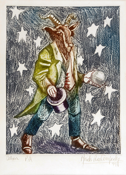 Cabra pertenece a la Serie 4: Animales del horóscopo. A través de la prueba de autor, la artista verifica las características generales de su grabado. Esta instancia es el paso anterior a la edición final: se realizan pruebas de colores, formato y demás verificaciones de la calidad de imagen.